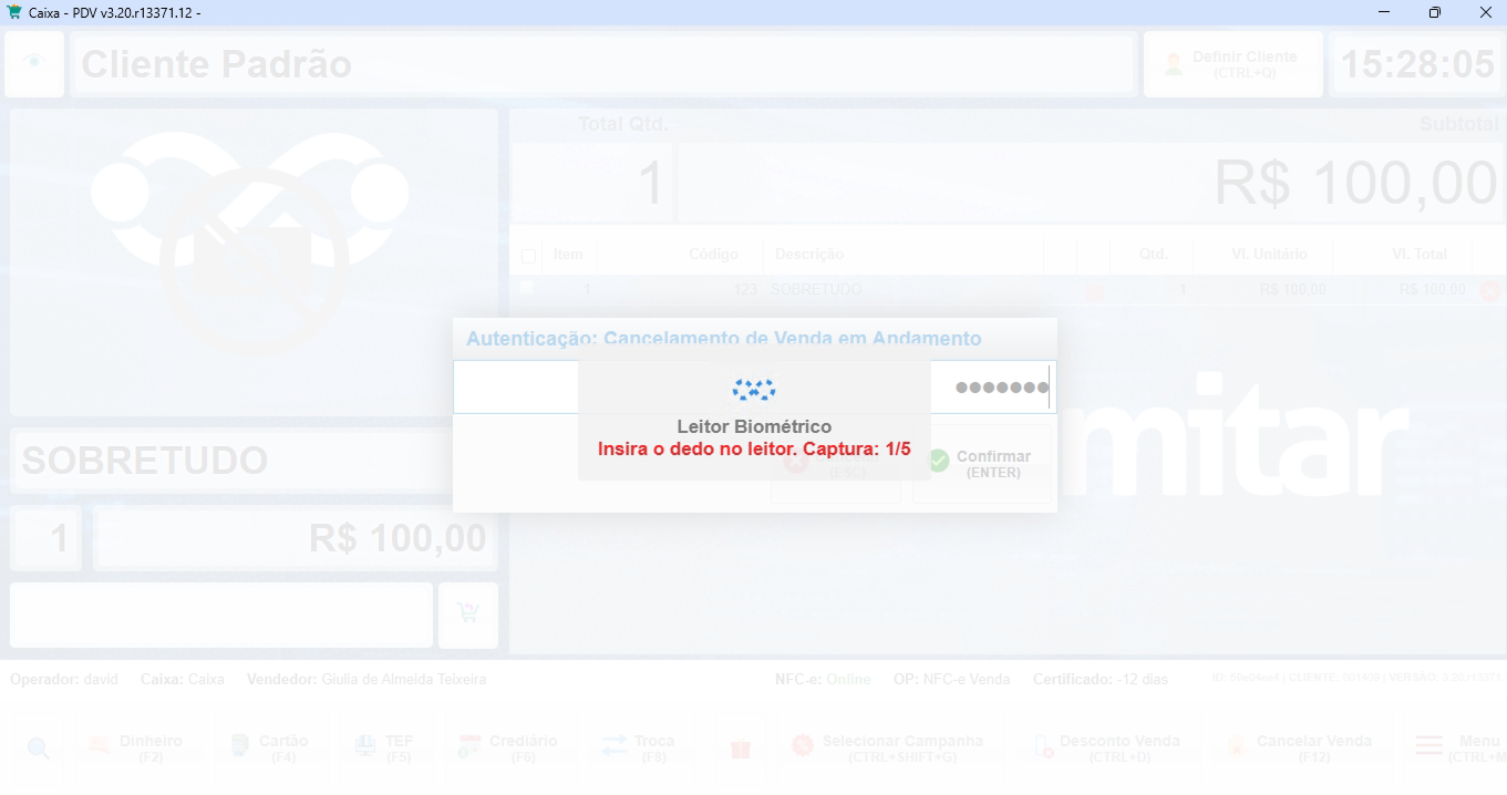 Este processo vincula a digital do colaborador ao seu PIN Fiscal, garantindo que operações importantes sejam validadas pela pessoa correta.