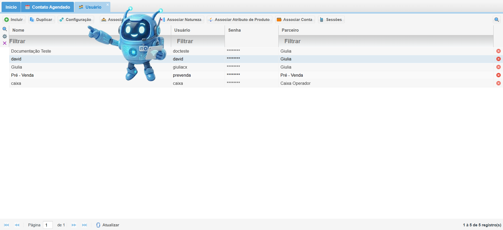 Selecione o usuário desejado na lista. Clique no botão Configuração localizado no topo da tela.