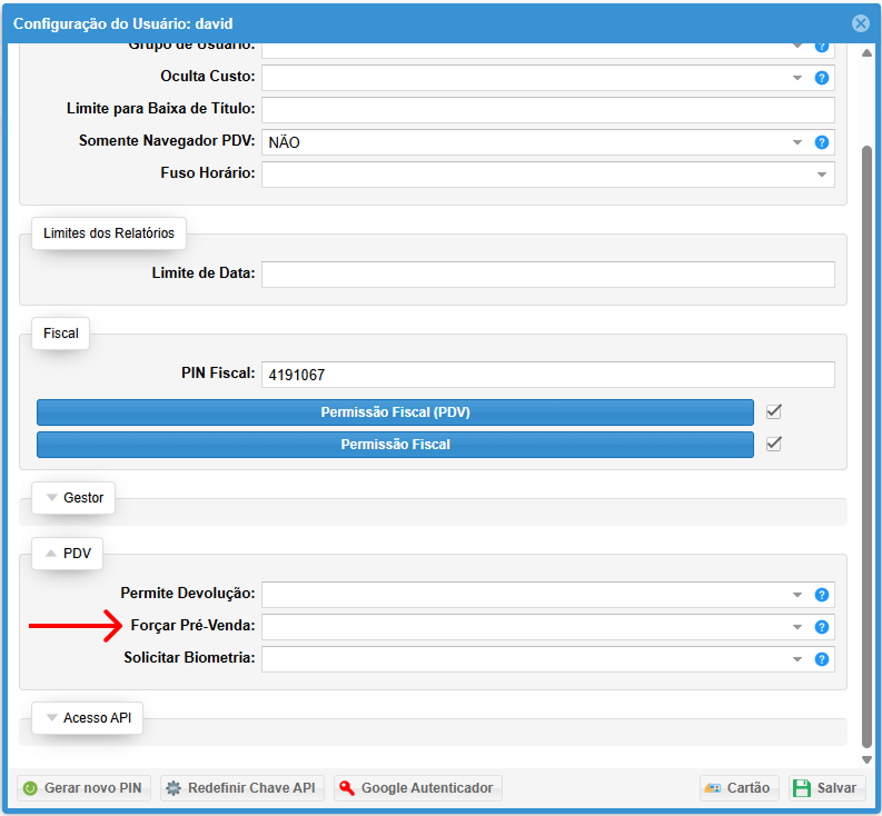 2.1 Configurando Permissão no PDV: