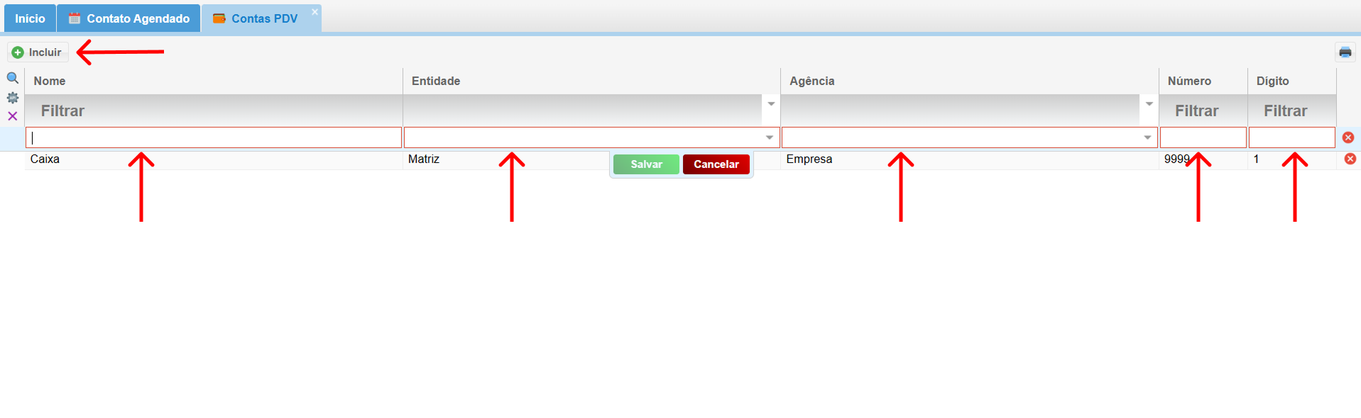 2. Cadastrando Novas Contas PDV: