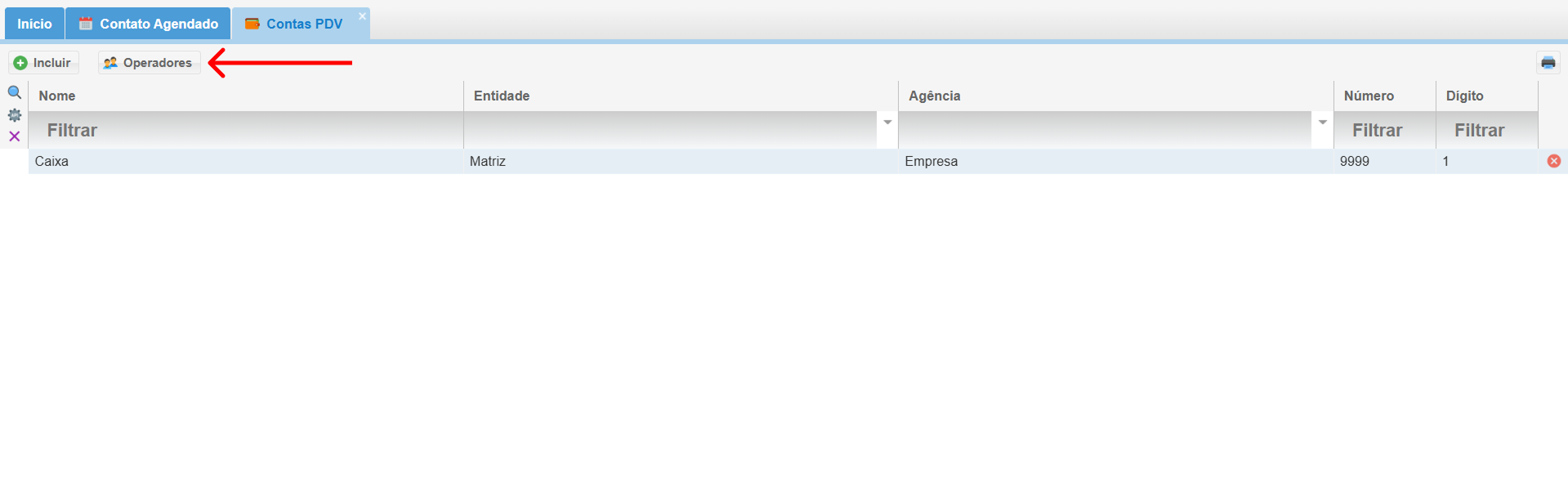 - Acesse a tela de Contas PDV.
