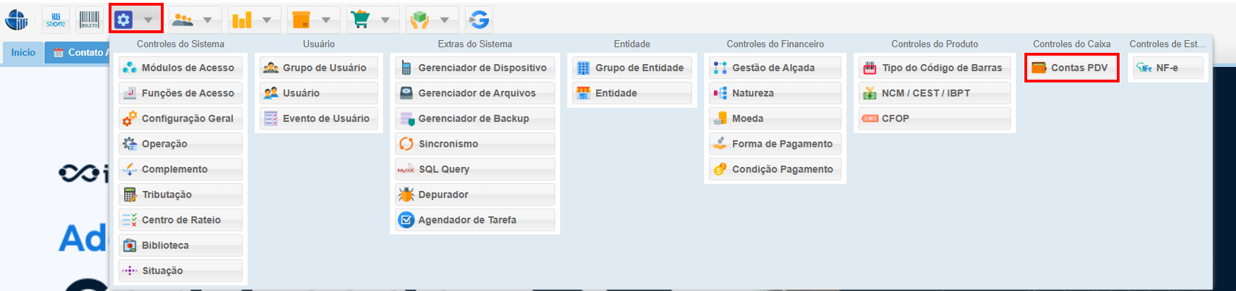 1. Acessando o Módulo Contas PDV:
