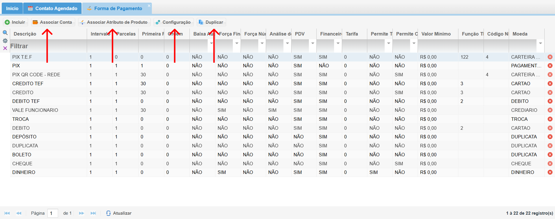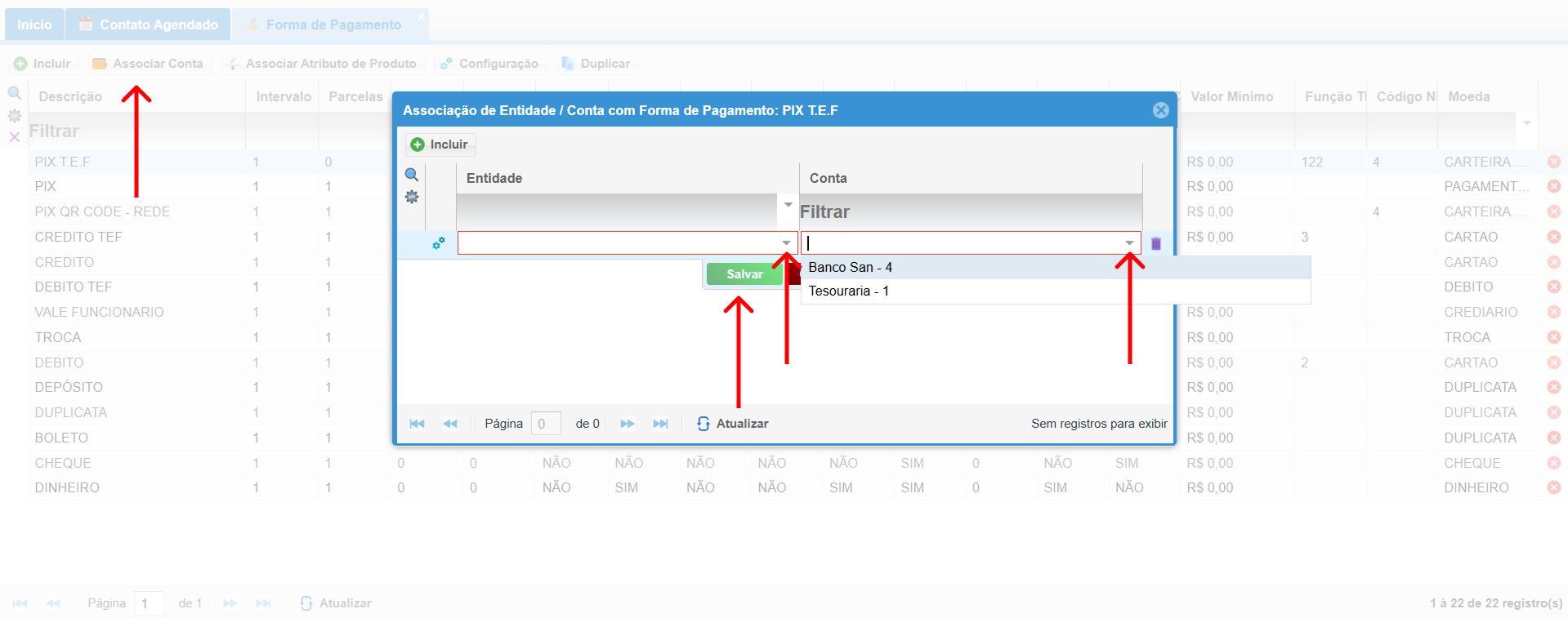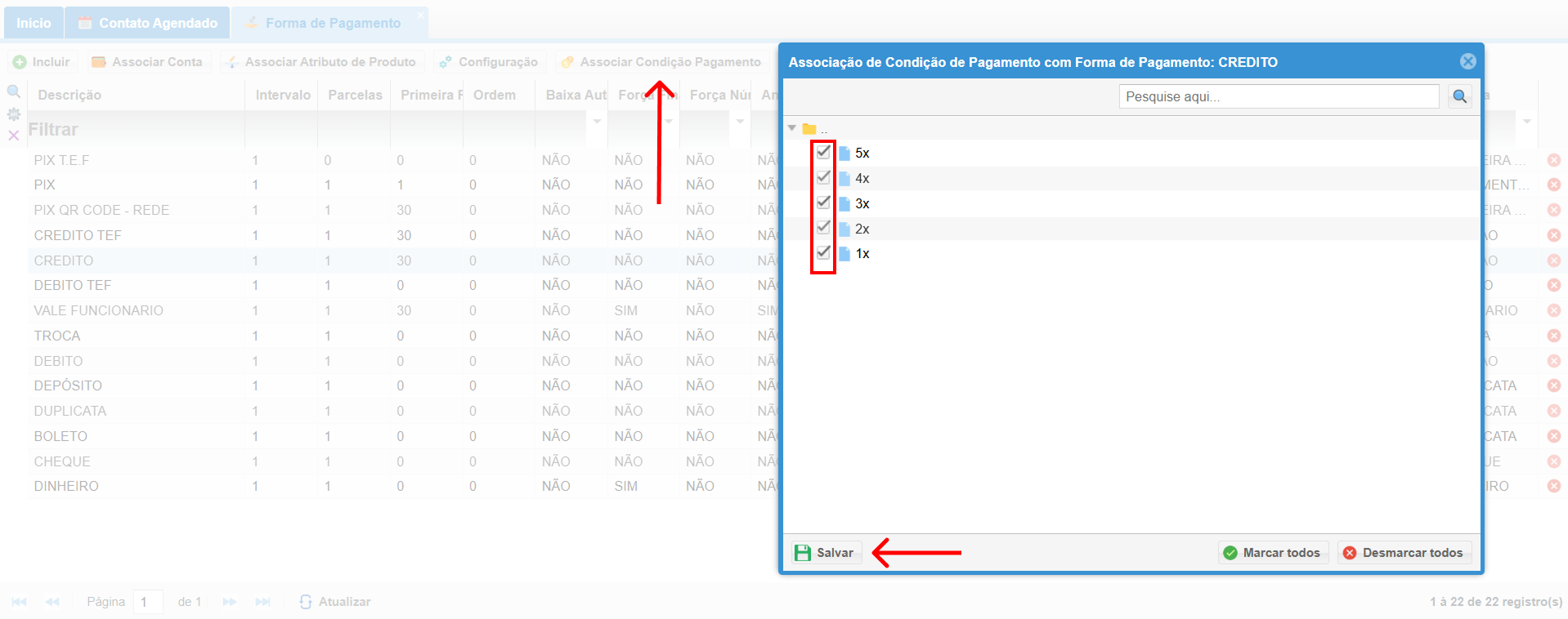 - Nas formas de pagamento Cartão e Cheque temos a opção de Associar Condição de Pagamento, para acessar as Condições de pagamento acessar este Artigo