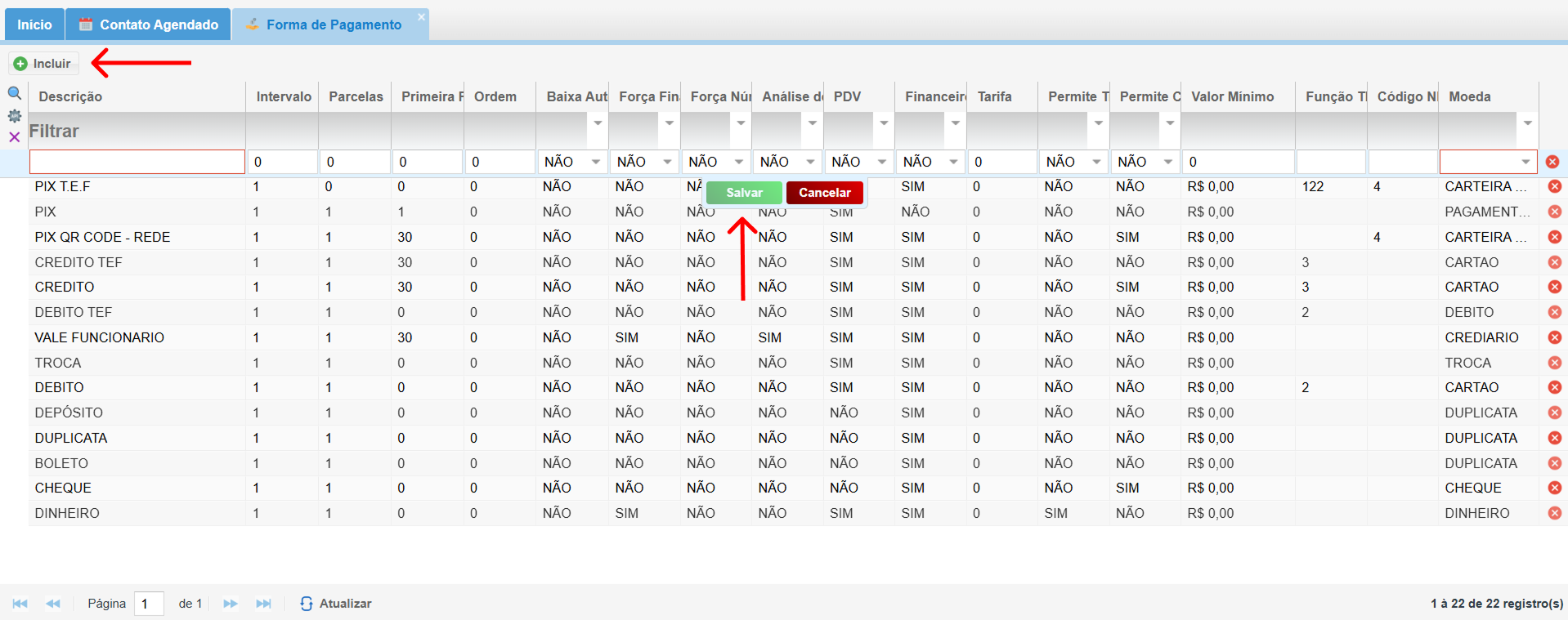- Após preencher os campos de acordo com suas necessidades, clique no botão Salvar para concluir o cadastro da nova forma de pagamento. Ela estará disponível para ser utilizada em suas vendas e transações financeiras.