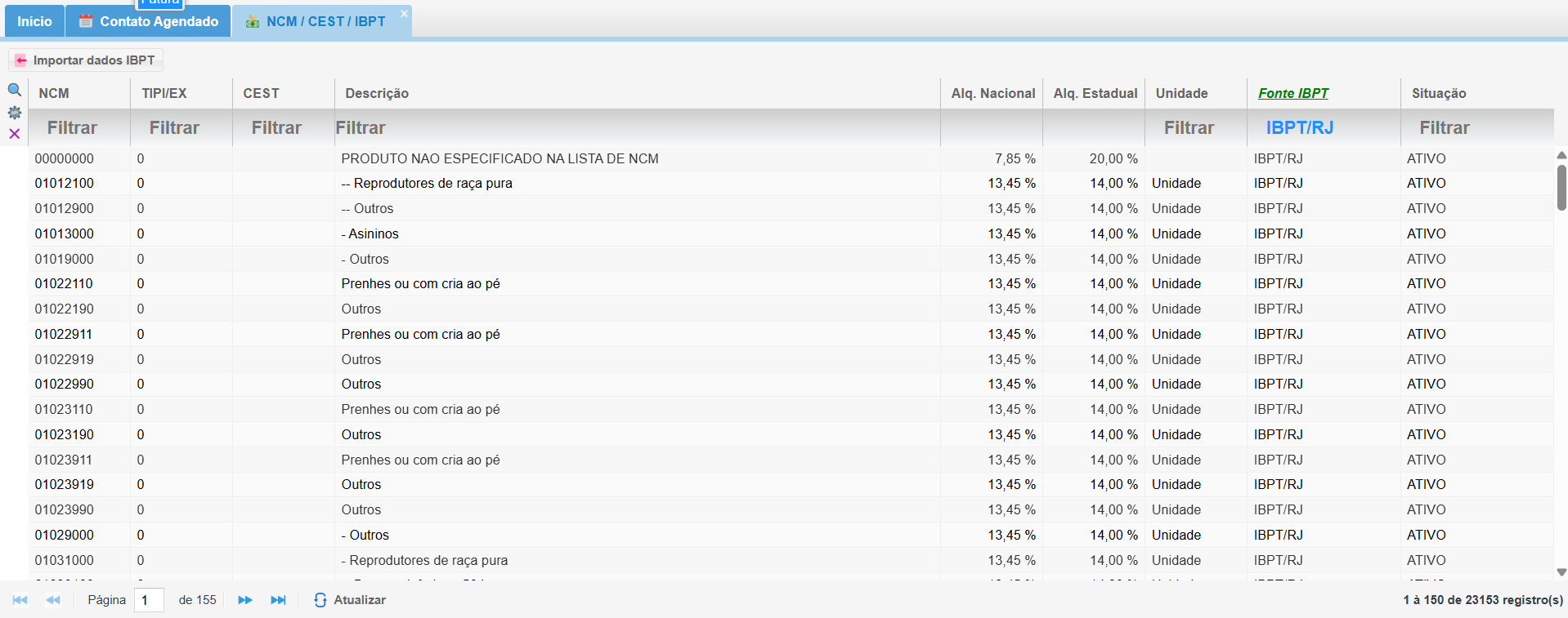 2. Visualizando os Códigos NCM, CEST e IBPT: