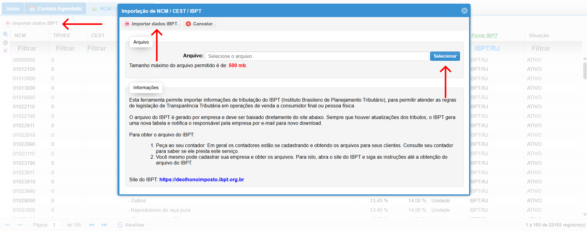 1. Acessando o Módulo NCM/CEST/IBPT: