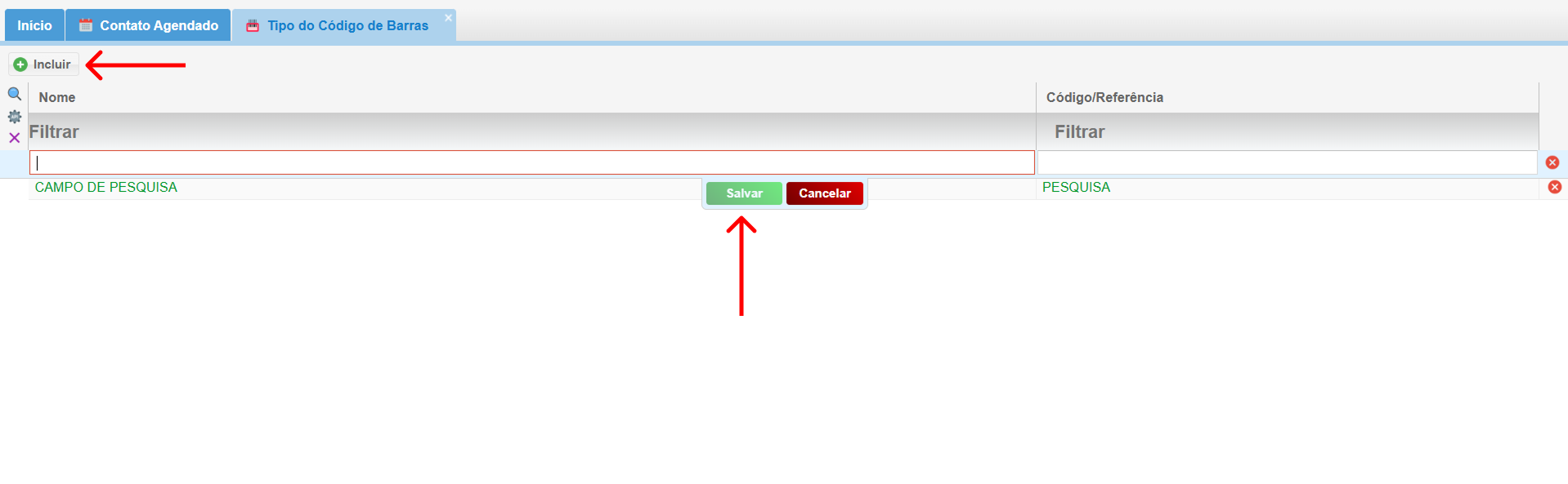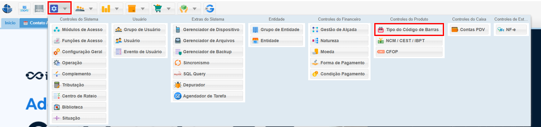 2. Visualizando os Tipos de Código de Barras Cadastrados: