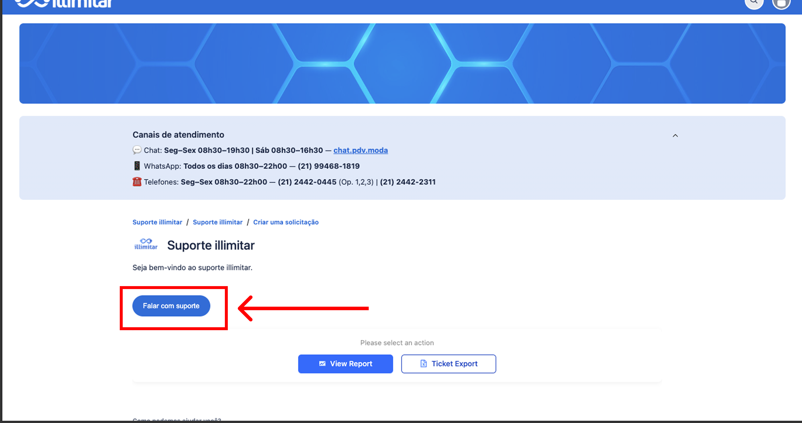 - E-mail de Suporte à Loja: Selecione esta opção para solicitar uma visita técnica à sua loja