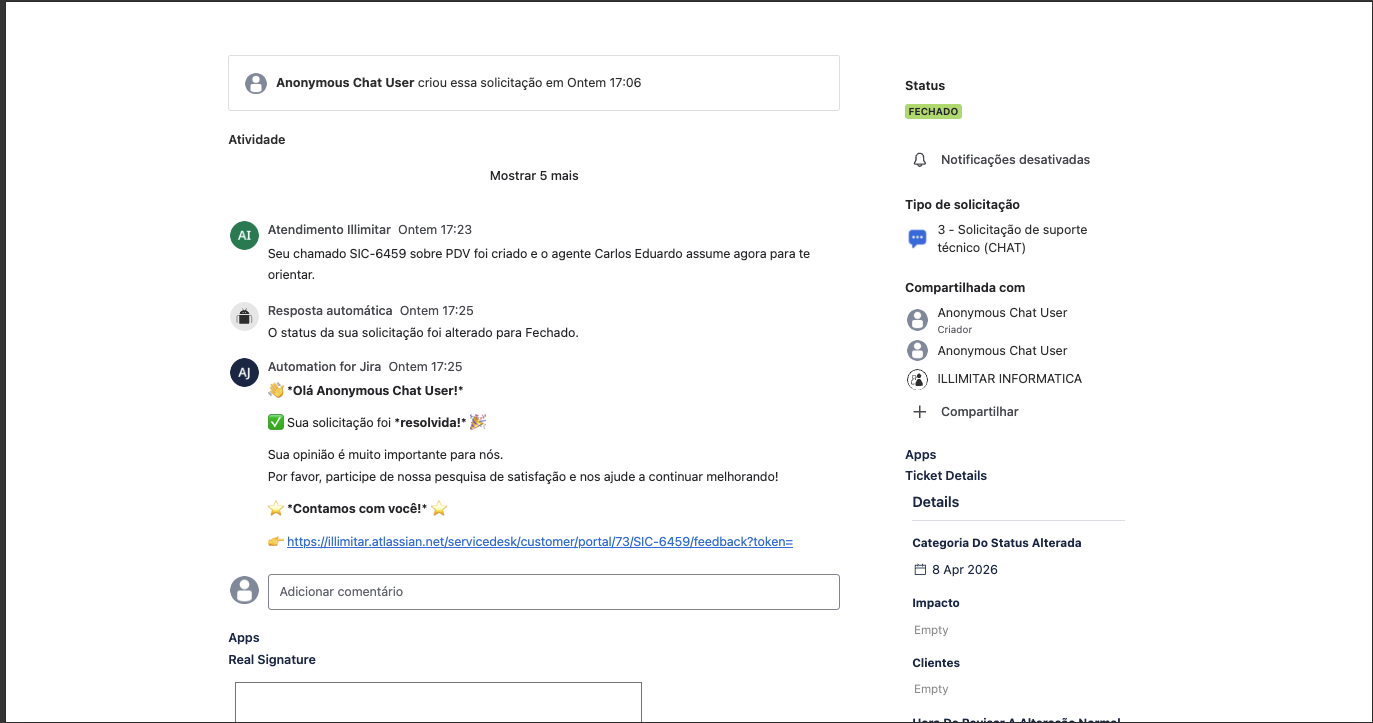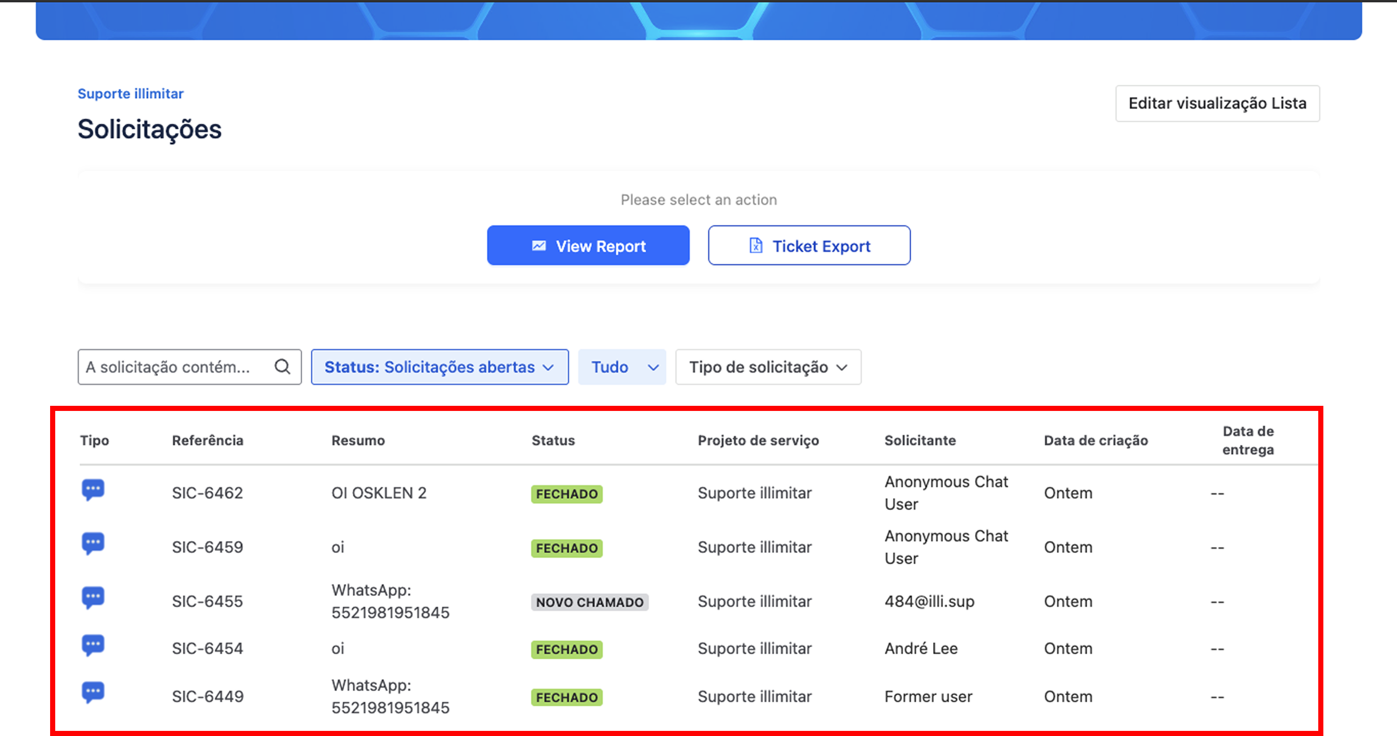 Solicitação de suporte técnico: Para dúvidas operacionais ou problemas pontuais (ex: problemas com cupom fiscal).