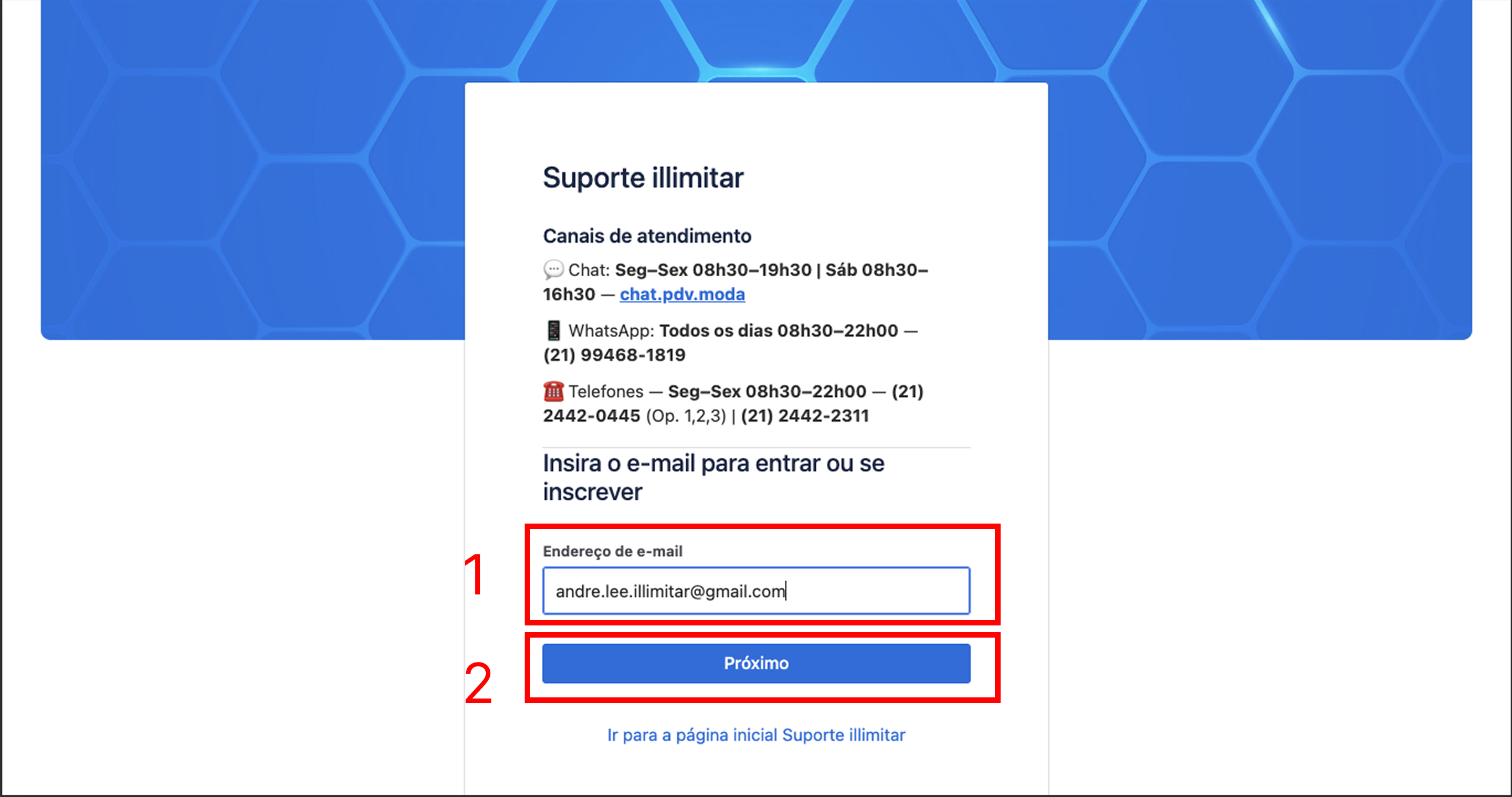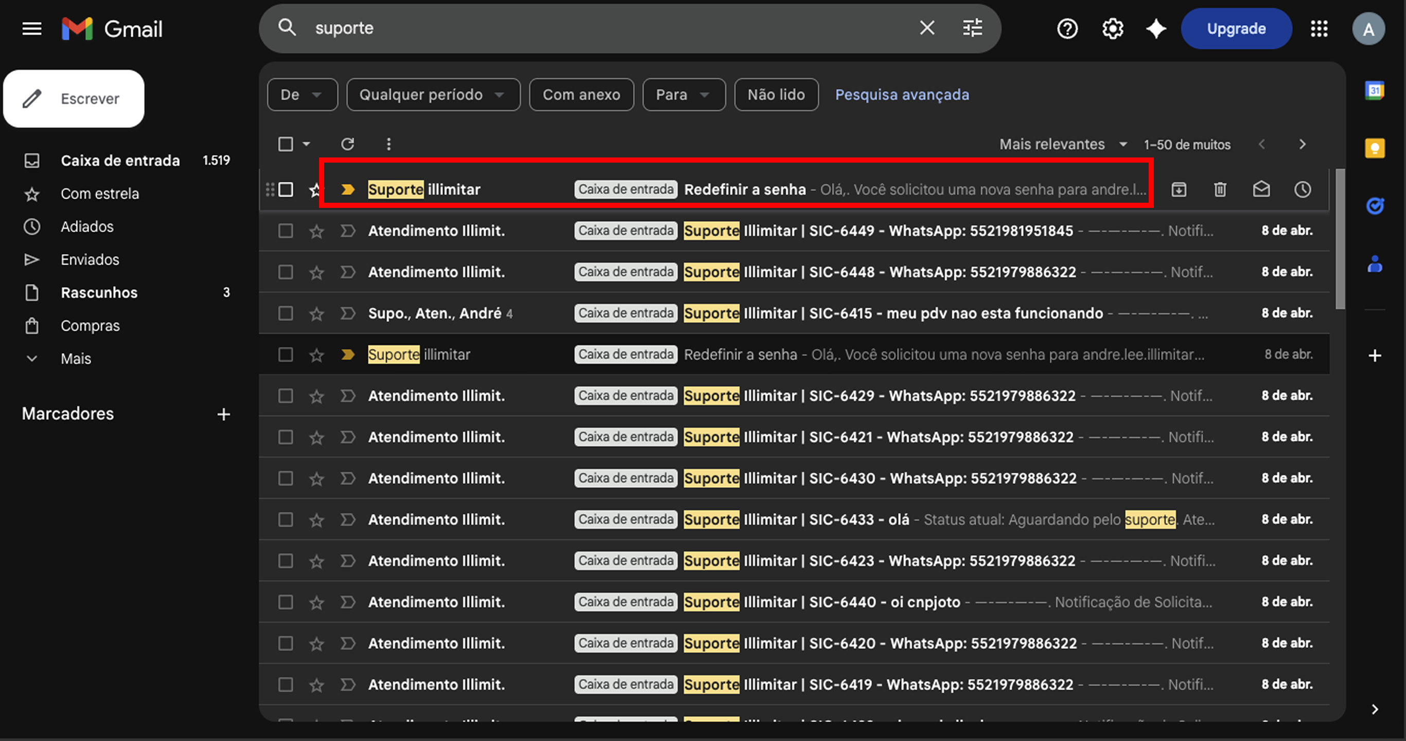 Verificação de E-mail: Acesse sua caixa de entrada e localize o e-mail enviado por "Suporte illimitar".