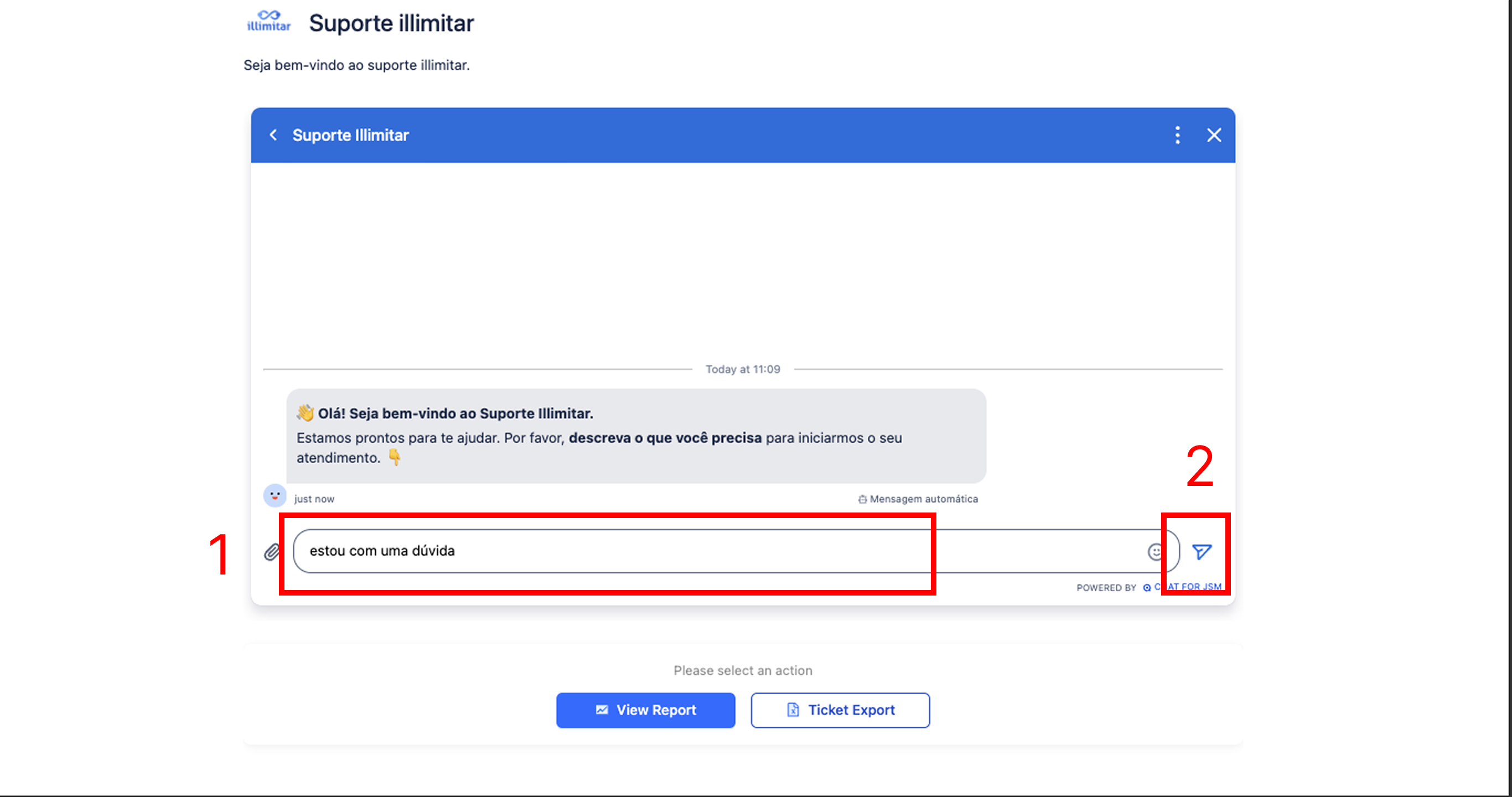 - Digite sua dúvida(1) e Clique no botão de envio(2)