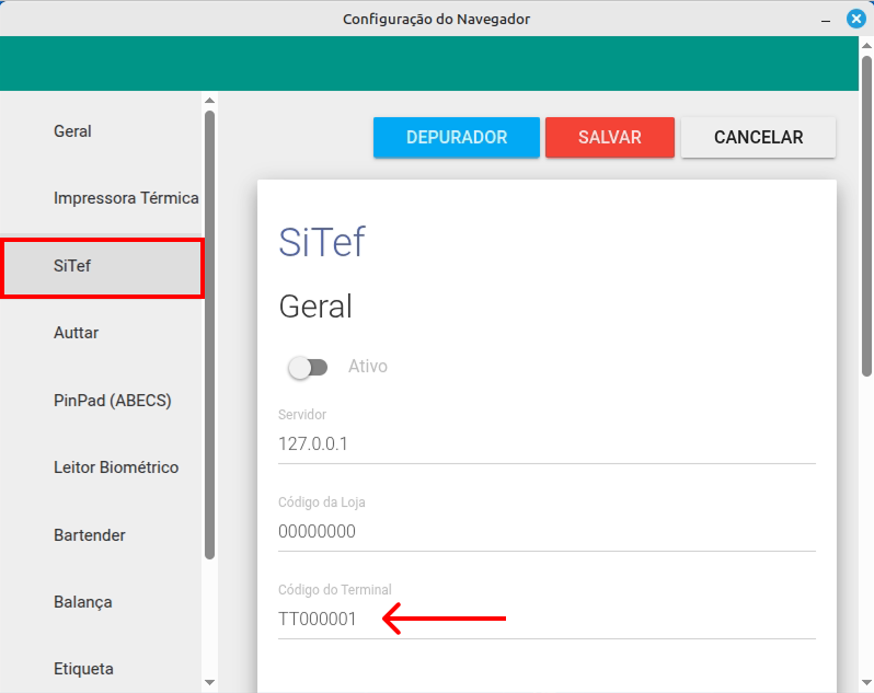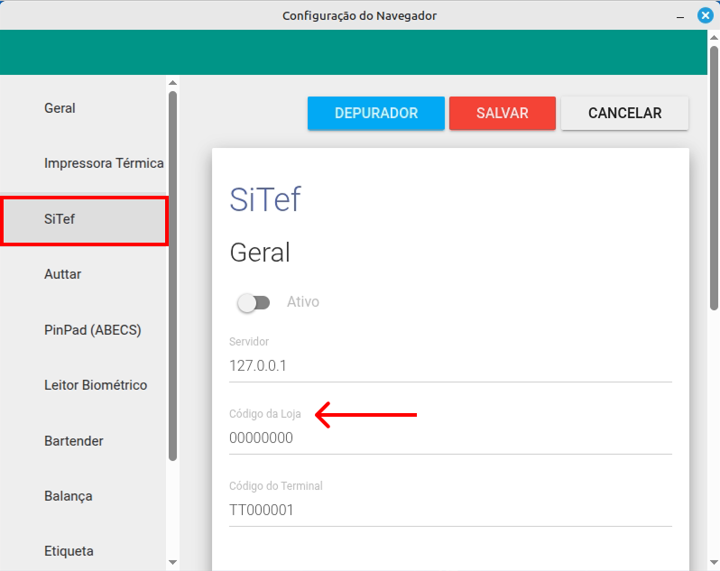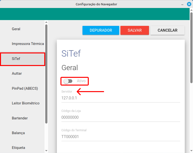 - Marque a opção para Ativar o Modulo SiTef.