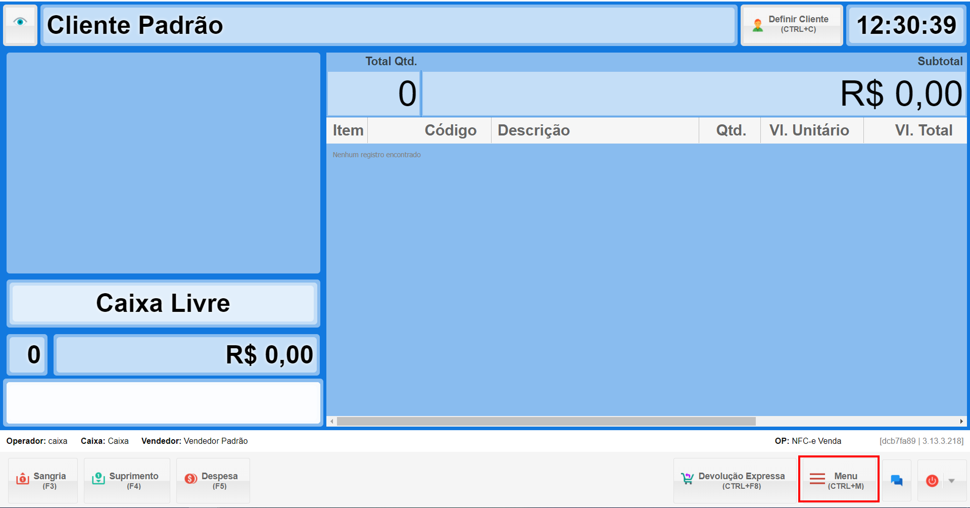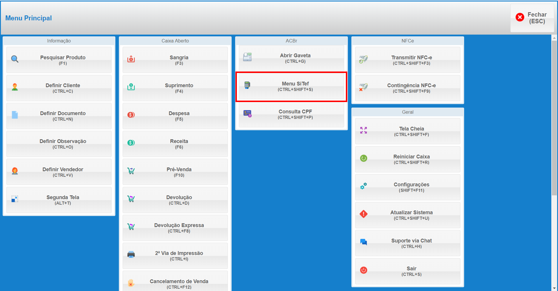 - Abra o seu PDV, vá até o Menu.