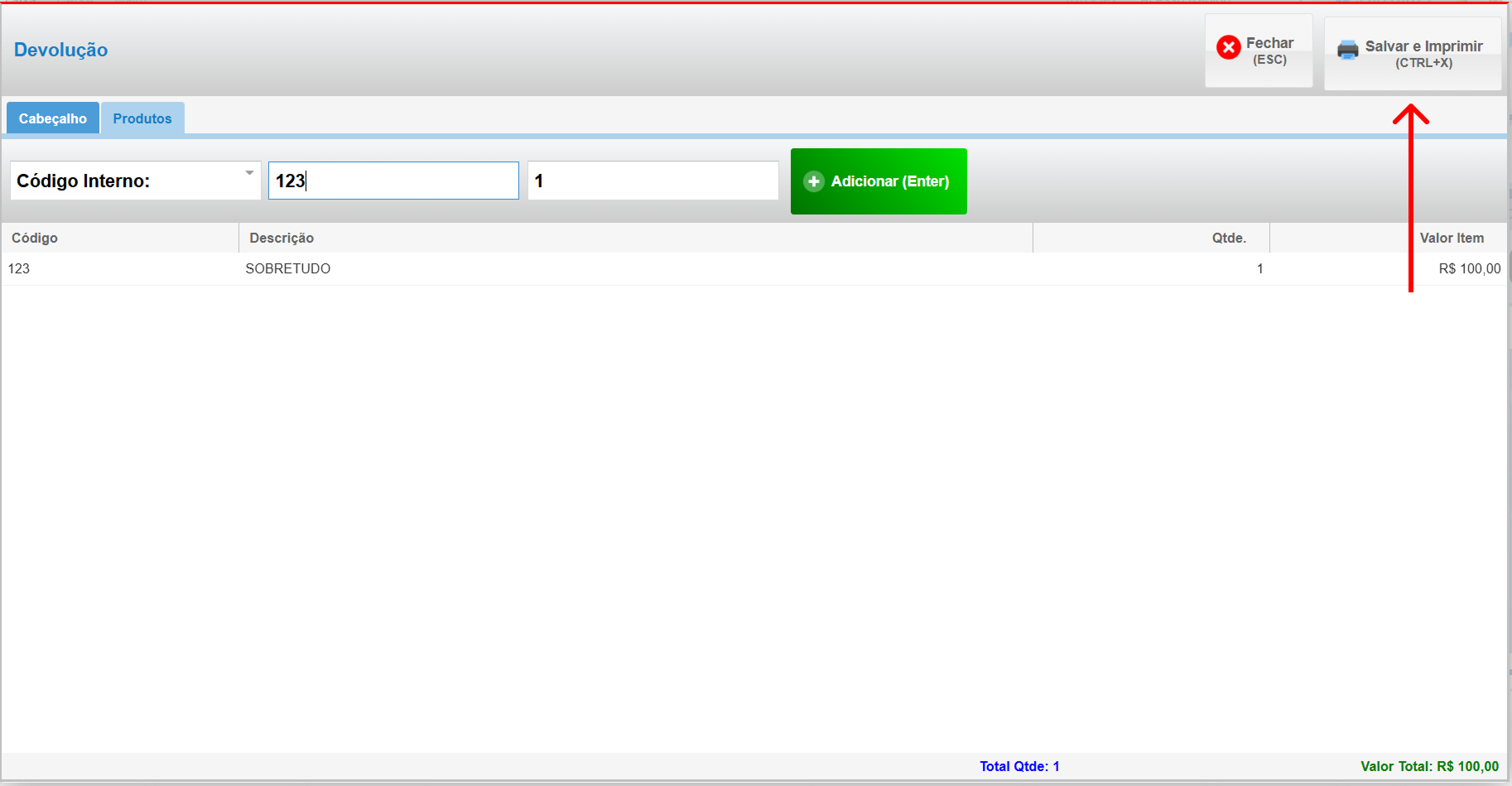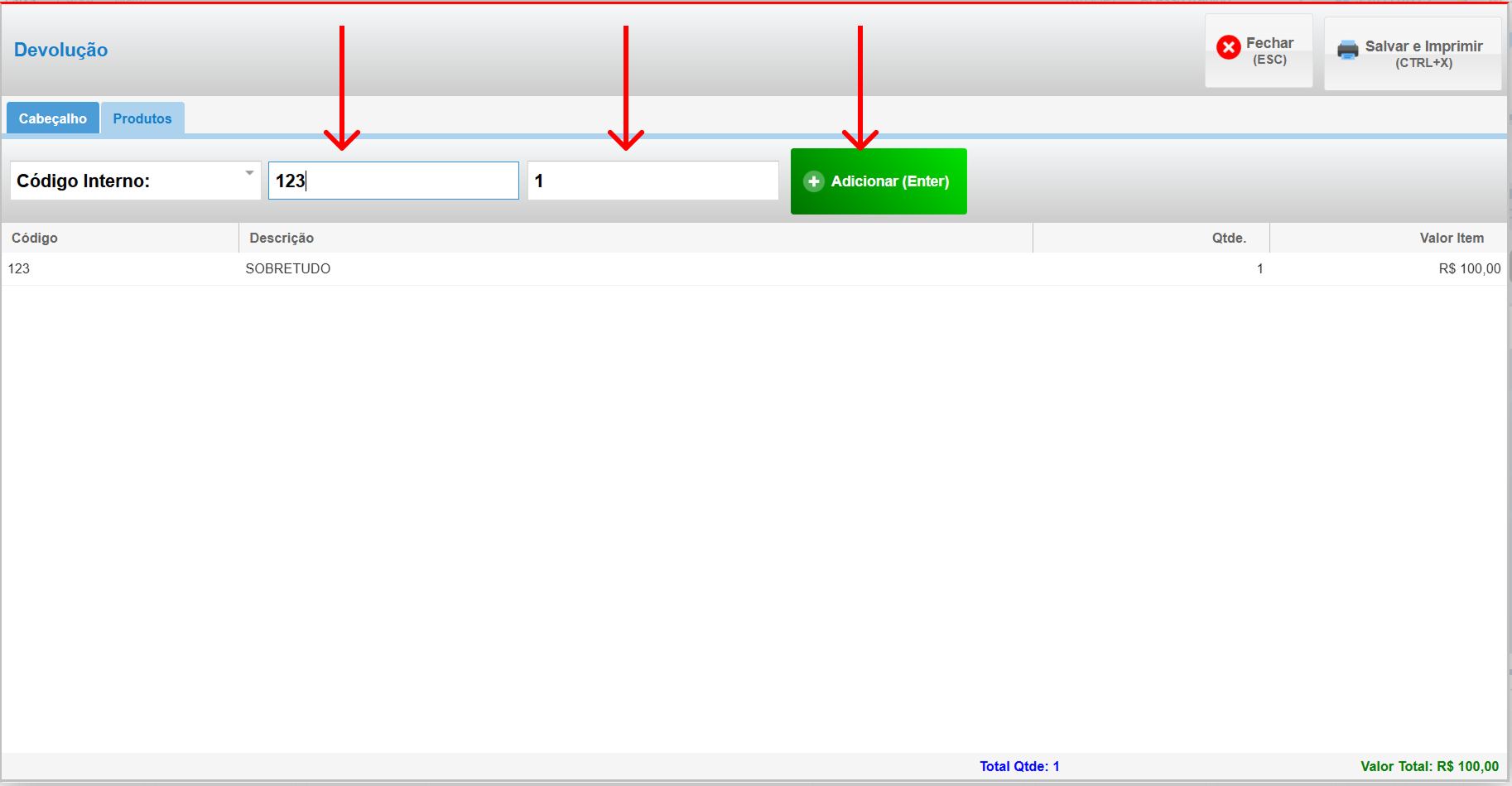 Adicione o Produto: Insira o código do produto que está sendo devolvido.