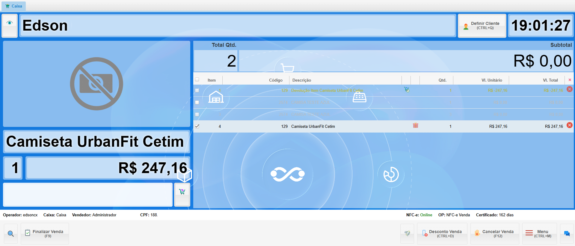 - Em seguida, o produto levado na venda original ficará com uma coloração amarelada no PDV.